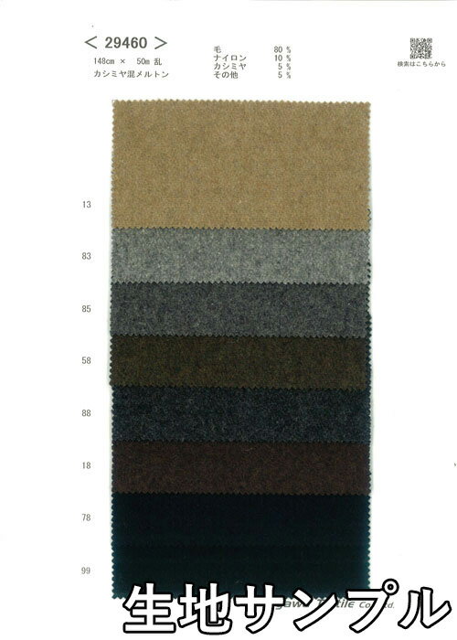 ウール【29460】【無地】【送料無料 クロネコDM便発送 代引不可】【ウール生地】カラー全8色【生地サンプル】【カシミヤメルトン】29460 ☆コートやジャケット、スカートなどに最適