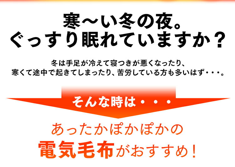 ●商品サイズ(cm):幅約190×奥行約130 ●消費電力:80W ●素材:綿100% ●表面温度:50℃(強) ●電気代:約1.6円/時登録先カテゴリ商品一覧>…>電気毛布